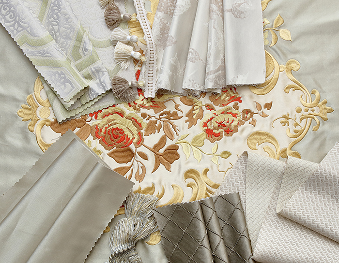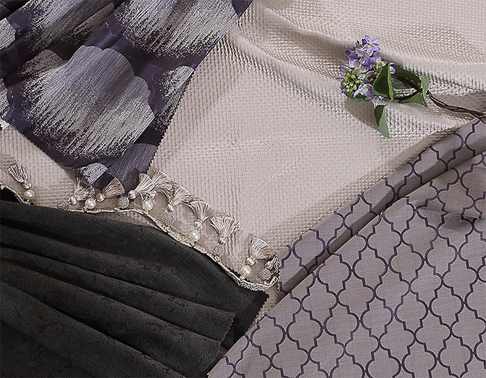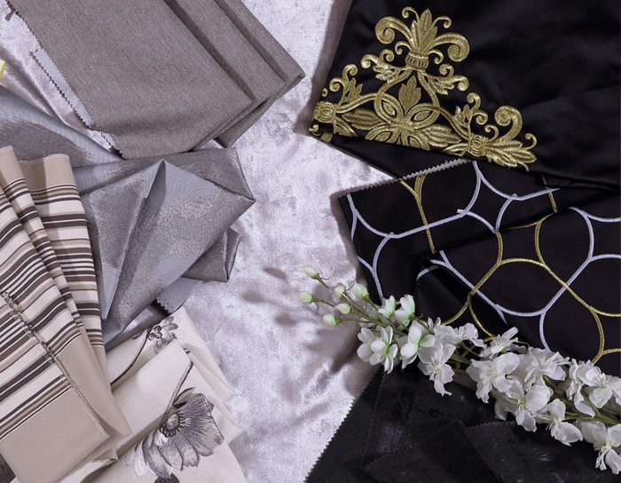 亚麻、丝绸、纯棉等多样的面料材质,层次分明,厚薄相兼。立体布艺和提花刺绣更显轻盈,同时将浓厚的艺术底蕴尽现,在法式灰的映衬下雅致中带着侯爵夫人般的贵气。