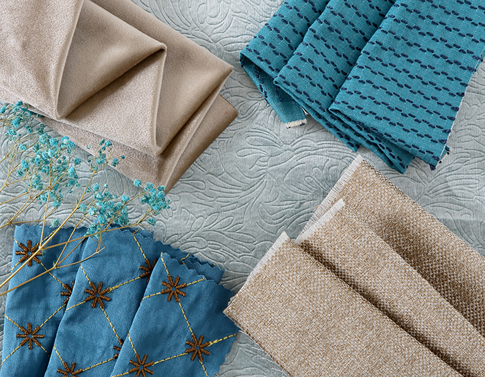 米白色调中加入适当比例的棕色,以天然的古朴抵抗岁月的痕迹;蓝色刺绣提花栩栩如生,精致细腻中糅着典雅的矜持,承袭着悠久的传统工艺,绣制华美艺术。